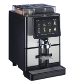 Dos molinos de café de grano, dos instantáneos y sistema de leche fresca.